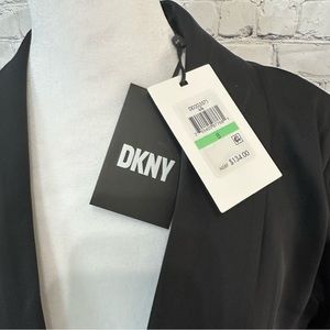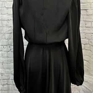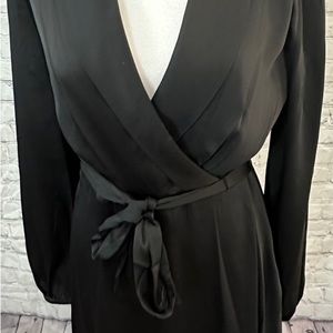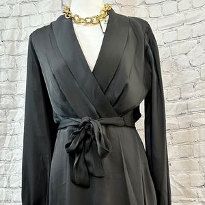 DKNY Black Long Sleeve Crepe Satin Faux-Wrap Dress-NWT
