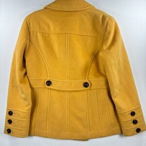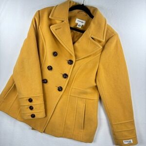 St. Johns Bay Pea Coat Womens SZ L Deep Yellow Classic Double Breasted Buttons