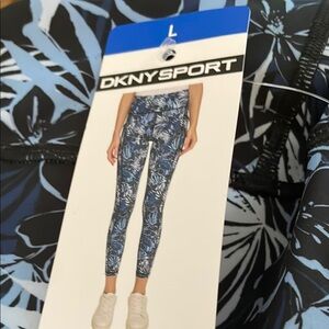 Stylish blue floral leggings from DKNY Sport. Perfect for workouts or casual wear.