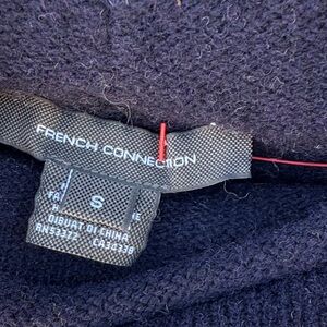 Stylish colorblock turtleneck sweater with navy, white, and mustard sections. Perfect for a cozy look. Ribbed and mixed textures