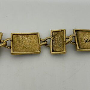 Vintage Liz Claiborne Enamel Floral Panel Bracelet With Green & Red Details Gold