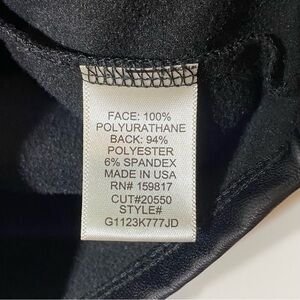 Sleek black faux leather skirt. Perfect for a modern look. Ideal for any occasion.