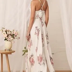NEW Elegantly Inclined Cream Floral Print Wrap Maxi Dress L