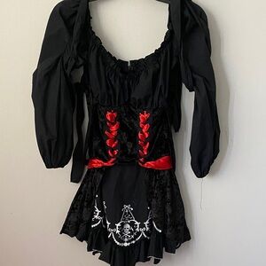 This elegant black and red dress features intricate detailing and a flattering silhouette. Perfect for any special occasion.