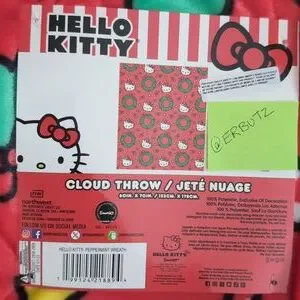 adorable blanket featuring Hello Kitty in a Christmas setting with allover candy cane, wreath, and bow design🎀 - a must have for the girly girl, Christmas Queen 👑