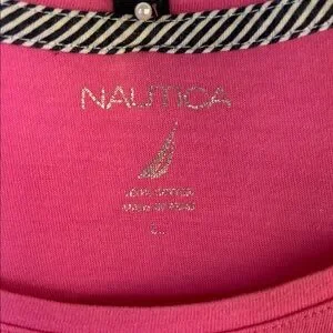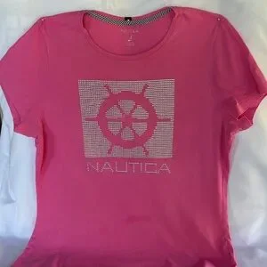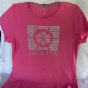 PRE-LOVED NAUTICA WOMEN’s PINK SHORT SLEEVE TEE- SIZE LARGE - VERY SOFT FABRIC. TEE IS IN VERY GOOD CONDITION. NOTICE THAT BELOW LOGO THERE IS A SHADOW THAT IS BARELY NOTICEABLE I. PERSON. SMOKE & PET FREE ENVIRONMENT. PLEASE REFER TO ALL PICTURES AND FEEL FREE TO ASK ANY QUESTION. BUNDLE & SAVE EVEN MORE 💰💵💰YOUR SHIPPING LABEL COVERS UP TO 5LBS. NEW TO POSHMARK?? SIGN UP USING CODE FORWARD2U & GET $10 OFF FIRST PURCHASE. THANKS GOR BROWSING MY CLOSET.