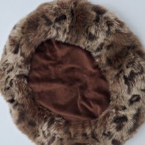 Chic leopard print beret hat. Soft faux fur texture. Perfect for stylish outings. Soft and in VGUC.