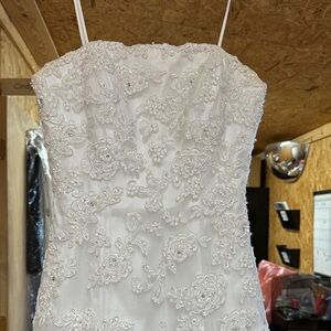 This stunning white lace wedding dress is perfect for your special day. Its elegant design and intricate lace details make it a timeless choice for any bride.