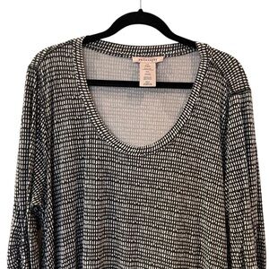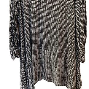 Philosophy Womens Tunic Black White Long Ruched Sleeve Asymmetrical Hem Size XXL