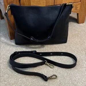 Genuine leather. Shoulder or crossbody option. Beautiful bag with outside pocket as well as inside pocket.