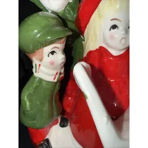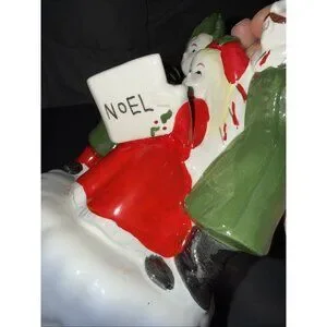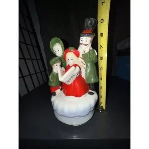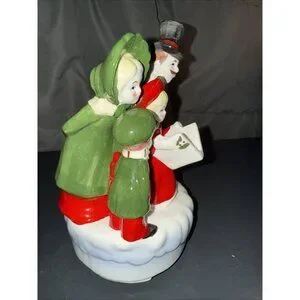 Christmas Carolers Music Box Vintage Ceramic Silent Night Rotates Works 8”Lx5”W