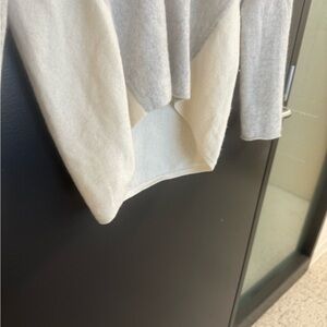 Duffy S Cashmere (100 percent) EUC shorter front with pooled sides classic and beautiful sweater!!! So soft Embrace comfort and style with this chic gray and cream sweater. Perfect for layering, it adds a touch of elegance to any outfit.