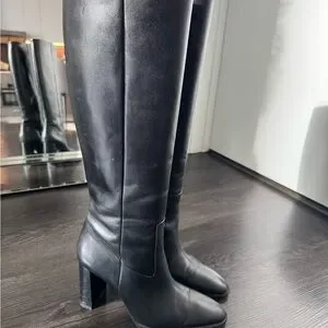 Chic black knee-high boots with a sleek design. Perfect for elevating any outfit. Only worn a few times