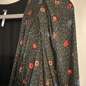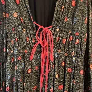 Free People Black and Red Floral Long Sleeve Dress
