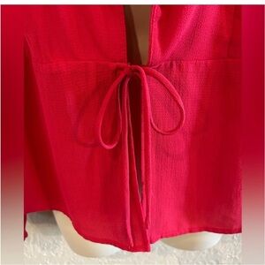 This vibrant red (red with a little hot pink) blazer from Torrid features a stylish open-front design with notched lapels, offering a relaxed, lightweight, and comfortable fit. The long sleeves and soft, textured fabric make it a versatile addition to any wardrobe, perfect for layering over your favorite outfits.