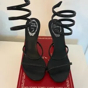 Rene Caovilla Black Spiral Strap Heels
