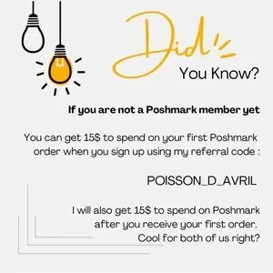I will also get 15$ to spend on Poshmark after you receive your first order. Cool for both of us right? 😃