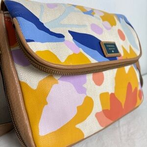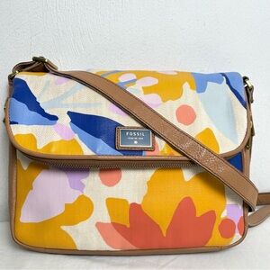 Fossil Preston Crossbody Bag Abstract Floral Crossbody Canvas Bag