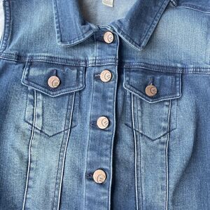 Cato EST 1946 Jean Vest Sz S Denim Stretch Fringe Hem Button Front Blue Casual