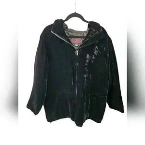 WOMENS LAUREN RALPH LAUREN BLACK VELVET SILK HOODED COAT PARKA LARGE