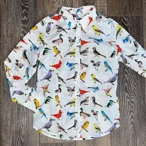 Embrace vibrant style with this colorful bird print blouse. Perfect for adding a playful touch to your wardrobe. Never worn. Fits XS & S. 100% cotton.