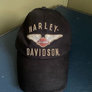 Classic black cap with silver Harley-Davidson emblem. Iconic design. Great condition! Has the metal adjustable on back. Harley Davidson Sz OS