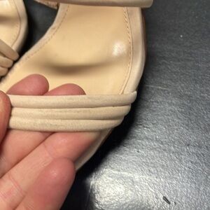 Stylish and versatile strappy heels in a beautiful cream shade. They’re in good condition with some minor blemishes, but still perfect for elevating any outfit!