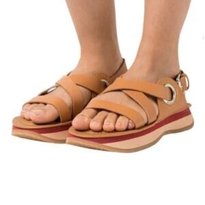 See by Chloe Tan Leather Ysee Sport Flatform Sandals Sz EU 37 / US 6.5