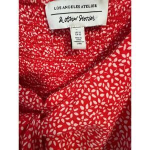 Red & white “Festival” has ruffled puff short sleeves and stretch back. 100% Viscous and in excellent condition.