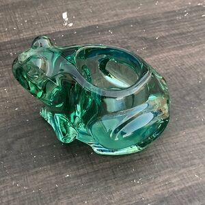 Add a touch of whimsy to your home with this charming green glass frog sculpture candle holder. Perfect for Frog art lovers and collectors.