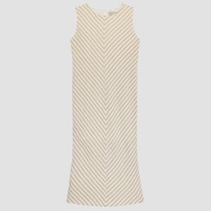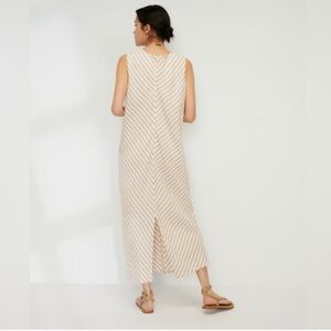 Everlane The Linen Bias Cut Dress Size 8 Striped Bone Caramel Ivory Beige Midi