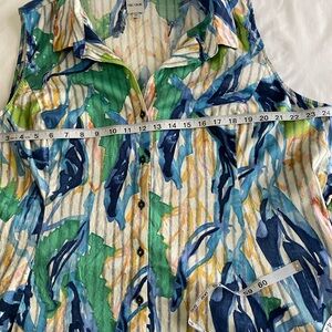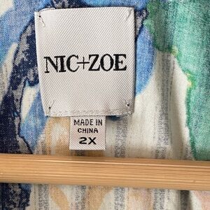 NIC+ZOE Green and Blue Scribble Vines Floral Sleeveless Midi Shirt Dress SZ 2X