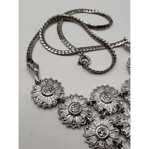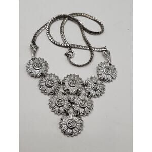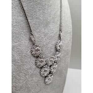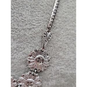 Vintage Floral Necklace Marked Sterling with Marcasite Accents 17 Inch