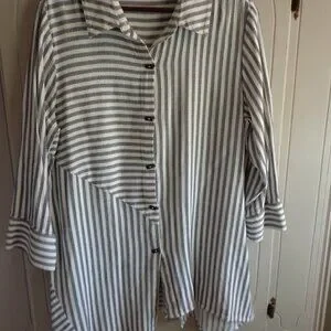 NWOT Soft Surroundings Striped Asymmetrical Tunic L Black/White Button Closure