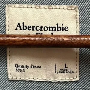 The product is a vintage-inspired Abercrombie & Fitch denim jumpsuit from the 90s, featuring a relaxed fit with a cinched waist. This one-piece jumpsuit is in a classic blue denim color, designed for women in a regular size L. The jumpsuit embodies the style and theme of the 90s, making it a unique and stylish addition to any wardrobe.