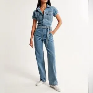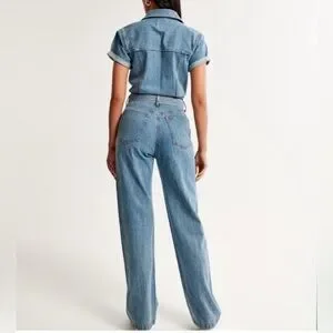 NWOT ABERCROMBIE & Fitch women's 90s Relaxed Denim Jumpsuit size L