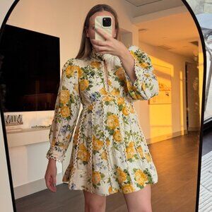 BHLDN Kali Long Sleeve Linen Fit & Flare Dress Cottagecore Wedding Guest Dress Size US 4.