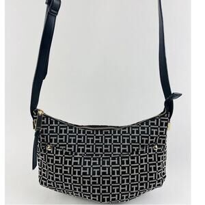 Tommy Hilfiger Tote Handbag Black Purse Outside Pocket Shoulder Bag Grey Moon TH