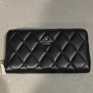 Keywords: black, leather, classic, wallet, clutch, Kate spade, quilted, black leather, luxury, designer, classic, classy, neutral, preppy, prep, chic, gold, ID slot, card slots, credit card, cash, zip, normcore, everyday accessories
