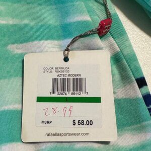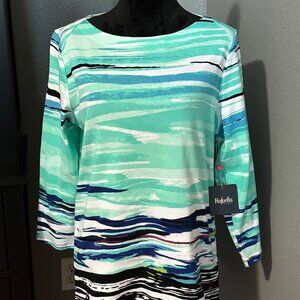 Rafaella Blouse L Abstract Green Blue 3/4 Sleeve Casual Coastal Beachy Chic NWT