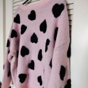 Torrid Women's Long Sleeve Pink Sweater With Black Hearts Size 2x