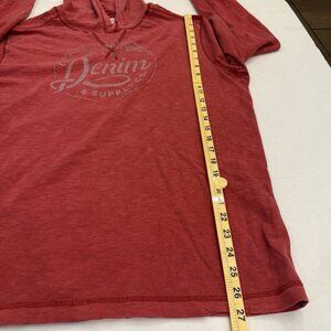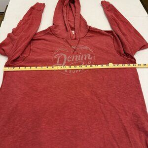 Denim & Supply Long Sleeve Hooded T Shirt Red with logo.