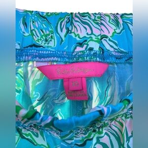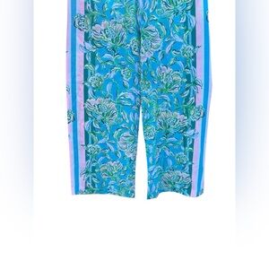 Step into sunshine style with these gorgeous Lilly Pulitzer pull-on pants in size XS, featuring a vibrant hand-painted floral print in beachy blue, green, and pink hues. Crafted from a lightweight viscose blend, these pants offer effortless comfort and easy elegance—perfect for your next resort getaway, vacation, summer party, or simply brightening up your everyday wardrobe. The mid/high rise elastic waistband ensures a flattering fit, while the straight wide leg silhouette gives you that signature Lilly effortless look. Pair with your favorite tank, blouse, or swim cover up to make every day feel like a getaway!