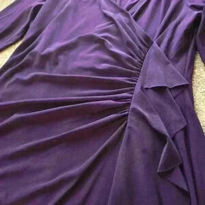 Black Label Evan Picone Purple Dress 3/4 Sleeve Ruched Ruffle|Size 10 #035