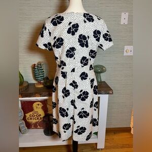 Boden Sierra Primrose White Navy Blue Floral Polka Dot Knee Length Dress Sz 10