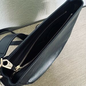 NWT pristine Rebecca Minkoff genuine leather black and gold studded braid detail crossbody purse saddle style bag. Zippered main compartment with multiple side pockets for storage and organization inside and out. Clean nonsmoking home.