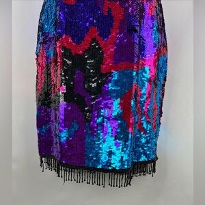 Beautiful Sean Collection Sequin Beaded Bodycon Fringe Pink Blue Black Purple Dress Size S - ''VINTAGE''