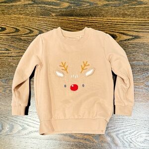 Petit Lem sweatshirts purchased for $51 (reindeer) and $49 (snow men). Minor stains shown in pictures and discounted appropriately. In great condition, worn once. As you can see from zoomed out photos stains are not prominent and definitely not noticeable (particularly for a toddler!)