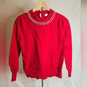 Liz Claiborne Red Embellished Crew Neck Pullover Sweater Size M