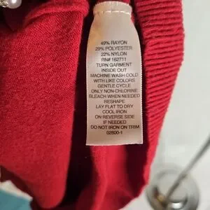 Add a touch of sparkle to your wardrobe with this Liz Claiborne women’s red embellished pullover sweater. Featuring a classic crew neckline and elegant embellishment detail, this soft long-sleeve sweater is perfect for both casual days and festive occasions.